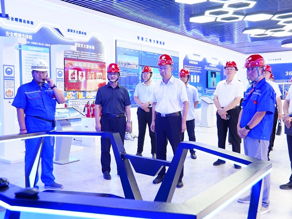 随后,王现坤一行来到项目“智慧安全体验中心”,听取了项目的全息投影、BIM技术应用、实测实量工具、智慧工地大数据平台、智能巡检机器人、虚拟灭火体验等十余项智能化设施运用情况的介绍。王现坤特别对项目创新运用VR技术打造沉浸式安全教育模式的做法表示认可。他指出,安全是发展的基石,项目突破传统培训的局限,以“身临其境”式教育模式,增强了培训的吸引力和感染力,切实做到让安全规范入脑入心,筑牢了安全生产防线。